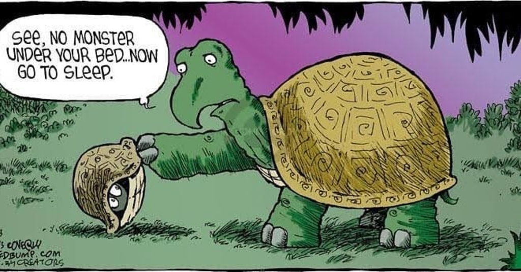 Yatağın altında canavar olduğuna kimseyi inandıramıyoruz 🤦🏻♂️ #comic #turtles #exam #animals