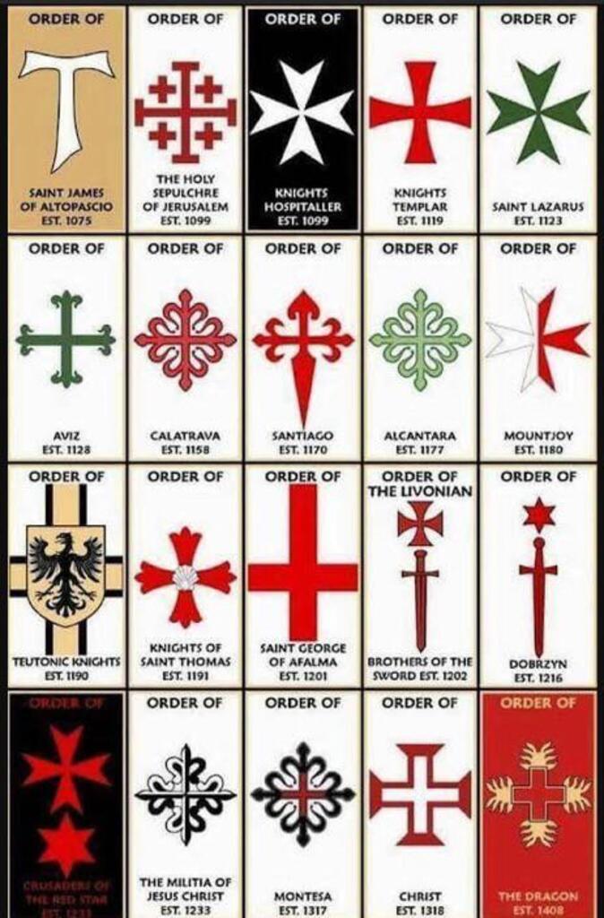Name, date of establishment, and crest/sigil of various crusader orders