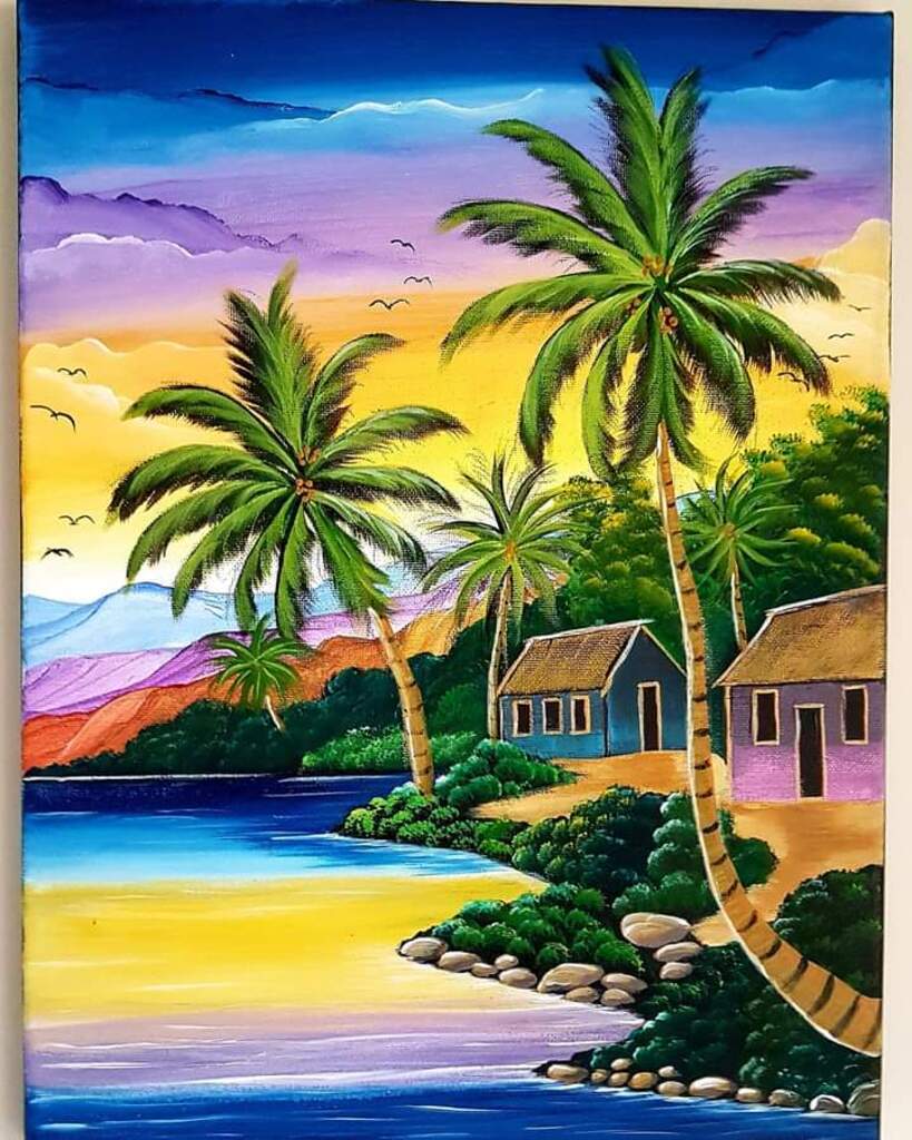 Acrylic on canvas Jamaican sunset,in full color💗