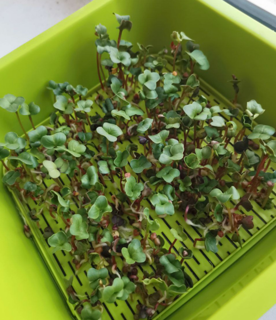 Ага! Как я и надеялась, редис показал себя во всей красе. Лучшие всходы, хотя тоже местами подзапрели. Это фотка от 14 числа. #microgreens #микрозелень