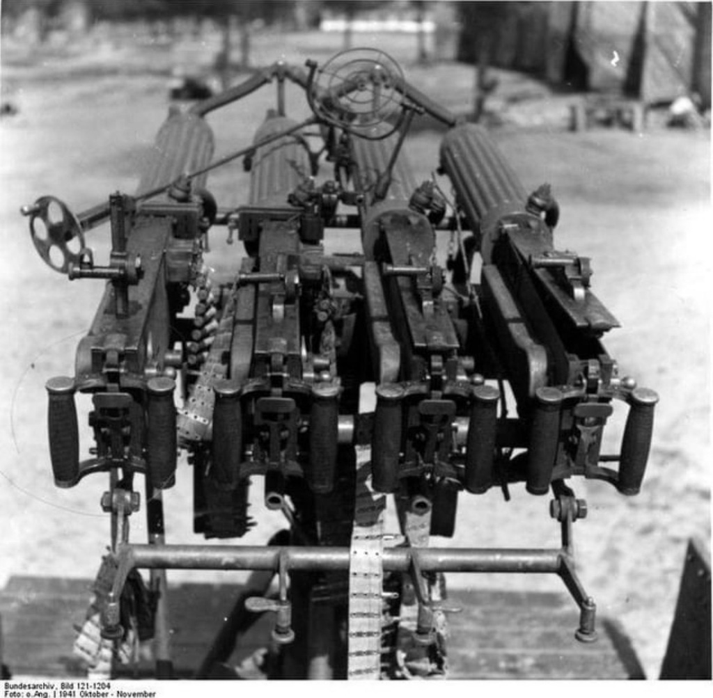 Maxim 1910 as AA gun, quad-mounted on a lory. Photocredit: Bundesarchiv.