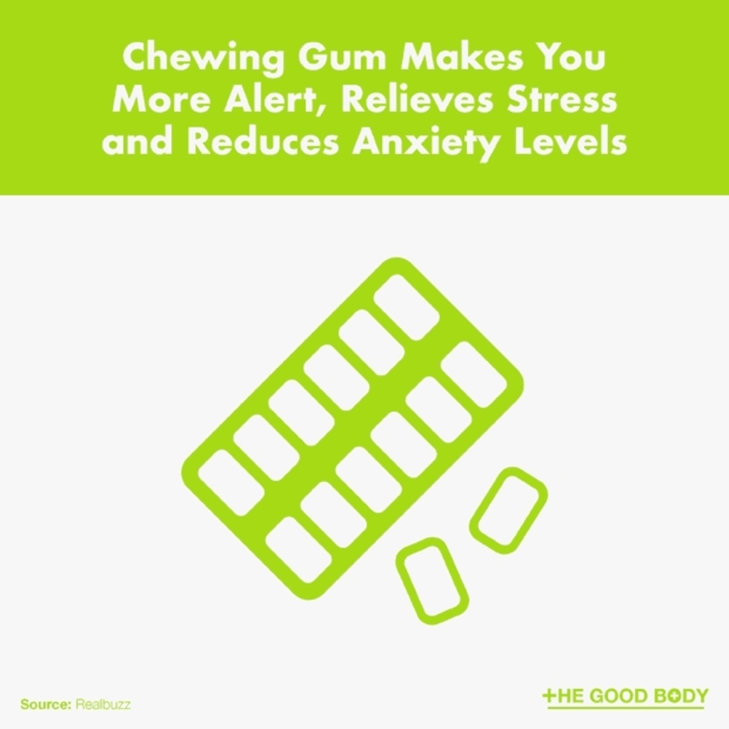 Chewing gum makes you more alert, relieves stress and reduces anxiety levels.