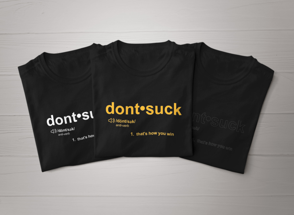 If you're a fan of slightly condescending shirts, then this is for you! https://www.strikefear.net/products/dont-suck-just-win