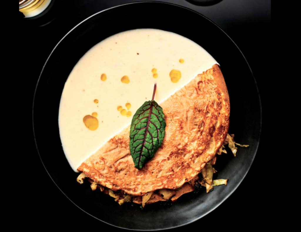En Canlis en Seattle, el chef Brady Williams, que está en la lista de Best New Chef de Food & Wine, equilibra componentes clásicos con técnicas modernas. Para sus Crêpes de cebada con col y salsa Pierre, Williams envuelve col fermentada a la parrilla en un sabroso crepé de trigo...See more