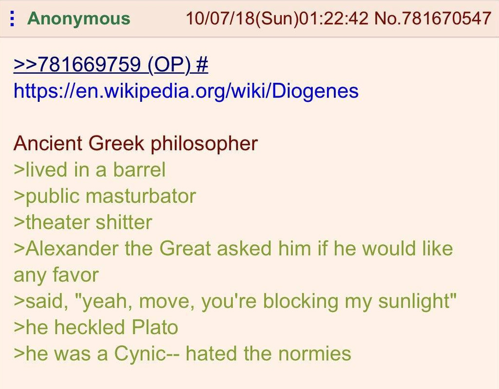 Diogenes was one of the earliest forms of shitposter.
