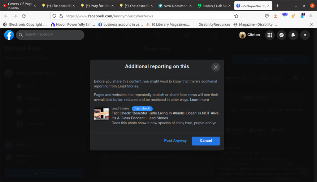 can someone please find the blue turtle that facebook bots are talking about.. I am curious what link I mislinked too?