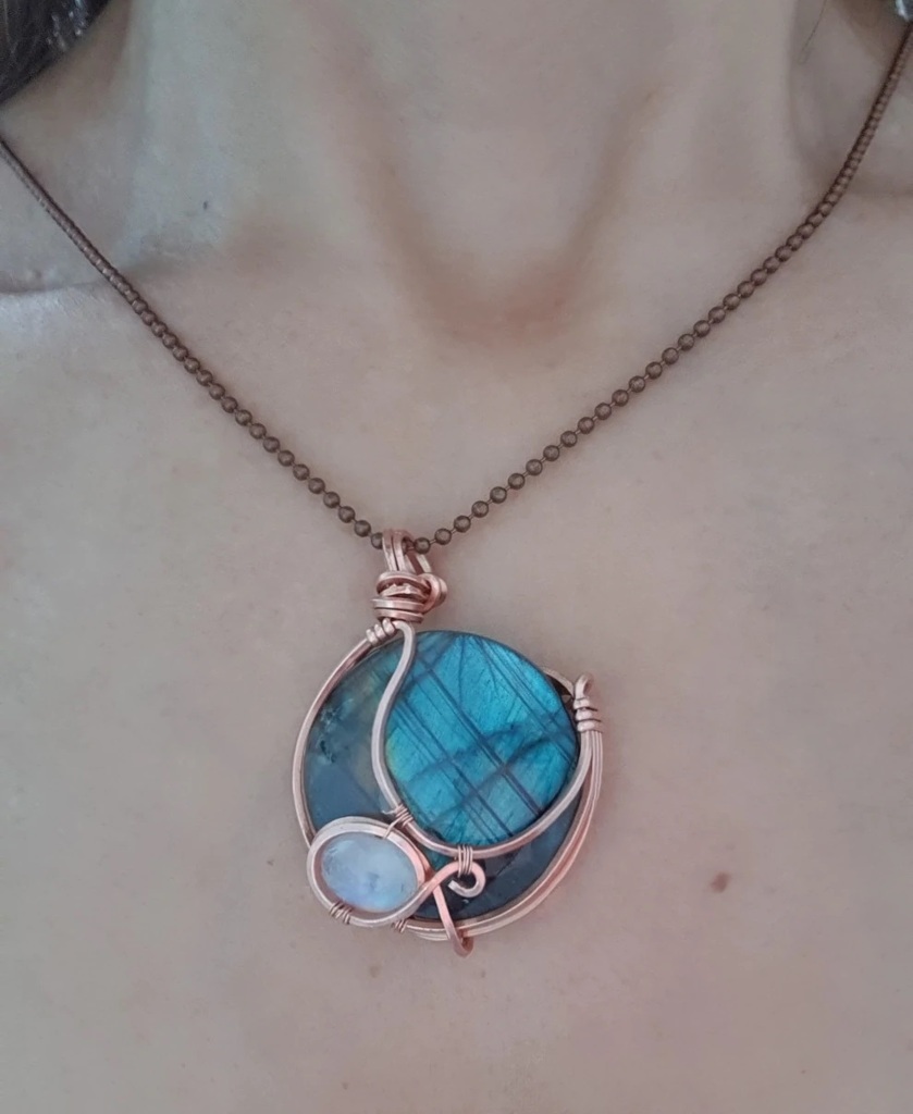 Round Blue Labradorite with a Moonstone Gemstone Pendant