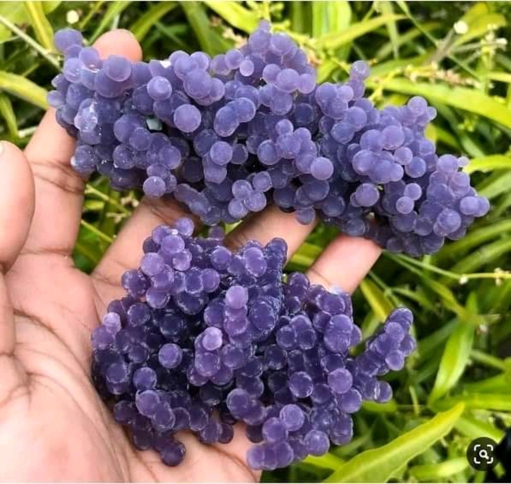 ...me given to a purple, botryoidal form of quartz/chalcedony. It forms in clusters that often resemble bunches of small grapes, and colours can range from pale to deep purple..
