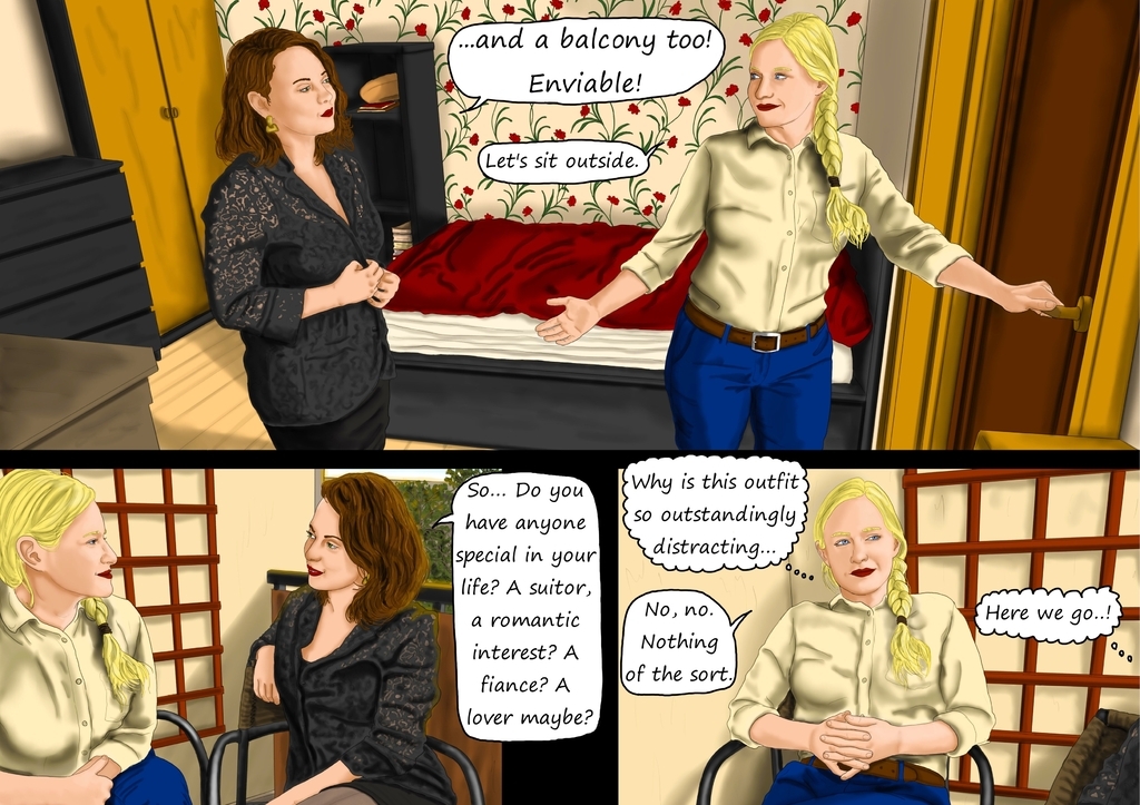 Charlotte visits the countess' aparment, very much dressed for success. Jumping right into it, she chooses a bold topic. Will this be enough to enlighten the countess though?