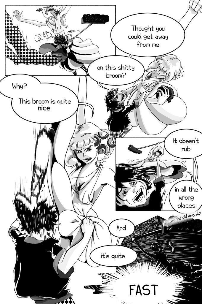 Bitch, you don't insult woman's broom and leave unscathed! Also, look here for whole comic (downloads included): https://www.deviantart.com/ledocool/gallery/79587076/zombiewitch-comic Or here, but minds is wonky: https://www.minds.com/ledocool/blog/zombiewitch-4-38-work-in-progress-1269288900937912329 Also, thanks @not_vipper for helping me with bubbles this time. #zombiewitch #comic