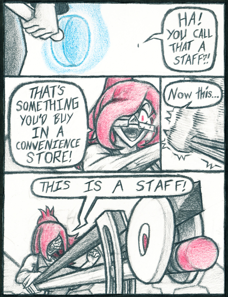 Making fun of Ribbon's staff, Mascott unveils her much cooler looking staff.