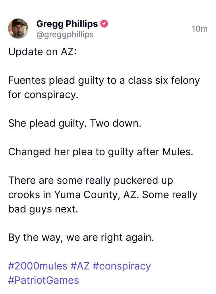 ​UPDATE from AZ: Guillermina Fuentes pleads guilty to a Class 6 felony for conspiracy #2000Mules
