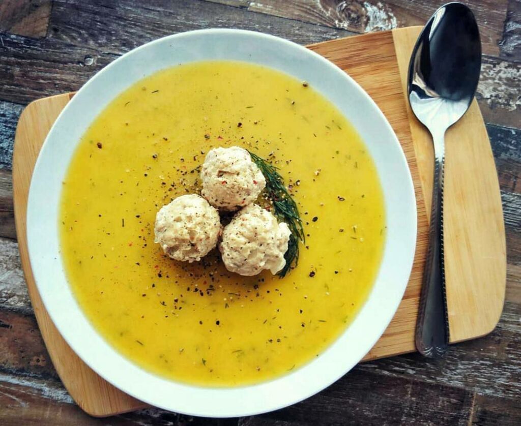 Zucchini puree soup with meatballs