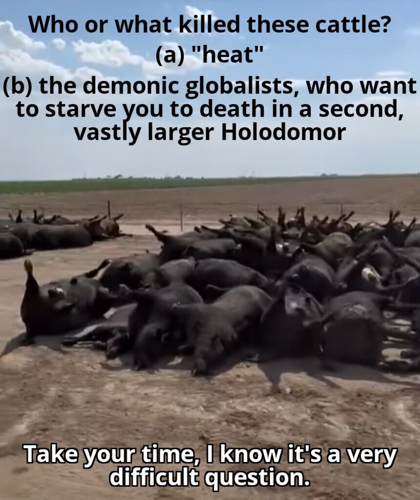 "Yet another food industry has taken a toll as thousands of cattle have died in Kansas from extreme heat, humidity, and the lack of grain supply brought on by Russia’s invasion of Ukraine." . . . Blah, blah, blah....See more