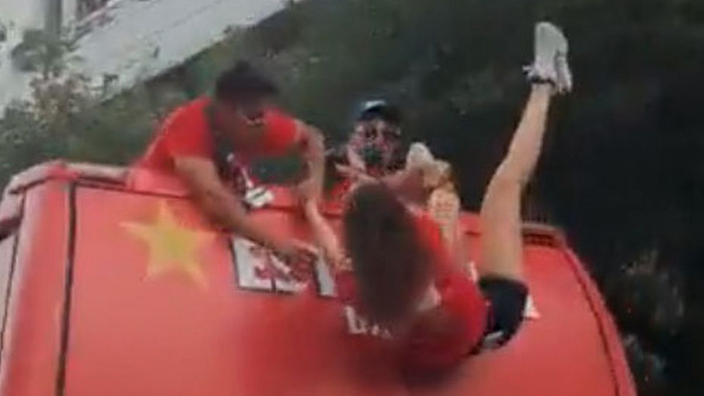 Footballers save photographer from serious injury after falling off open-top bus