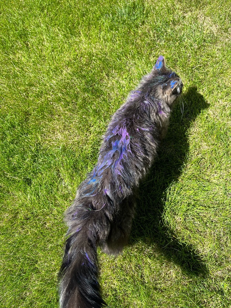 ...um… yeah. Note to self: don’t mix kids with paint with a neighbors cat. Thankful it’s water sailable..