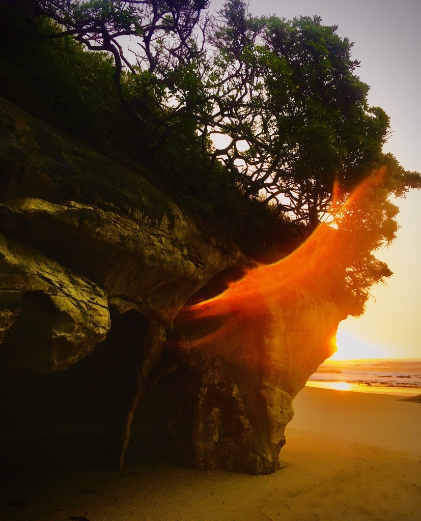 How the sun's rays bent around the rock face sure beats me, New Zealand #myphoto #photography #sunset #nature #outdoors