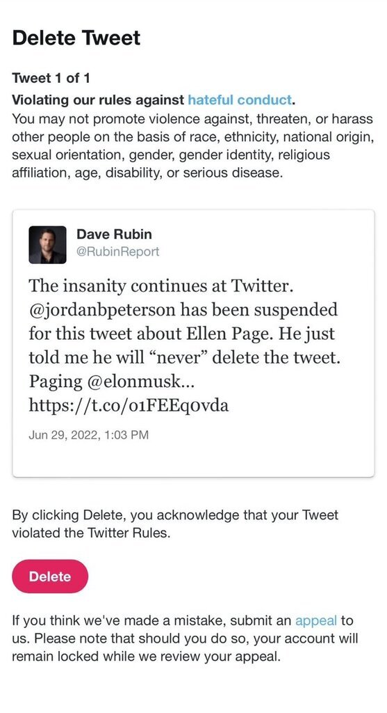 Holy Shit @RubinReport was suspended for posting about @jordanbpeterson getting suspended How did he even break any rules?