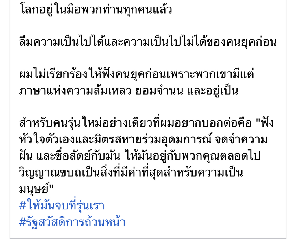 #รัฐสวัสดิการถ้วนหน้า เช้าวันนี้เข้าไปเช็คเฟสบุ๊คตามปกติ ไปเจอโพสต์ที่แชร์เอาไว้เมื่อ2ปีที่แล้ว อ่านกี่ครั้งก็ยังรู้สึกชอบมากๆ ขออนุญาตแคปข้อความบางส่วนมาแชร์ฮะ🙏🙏 #MINDSTH #Thaipolitics #Thailand
