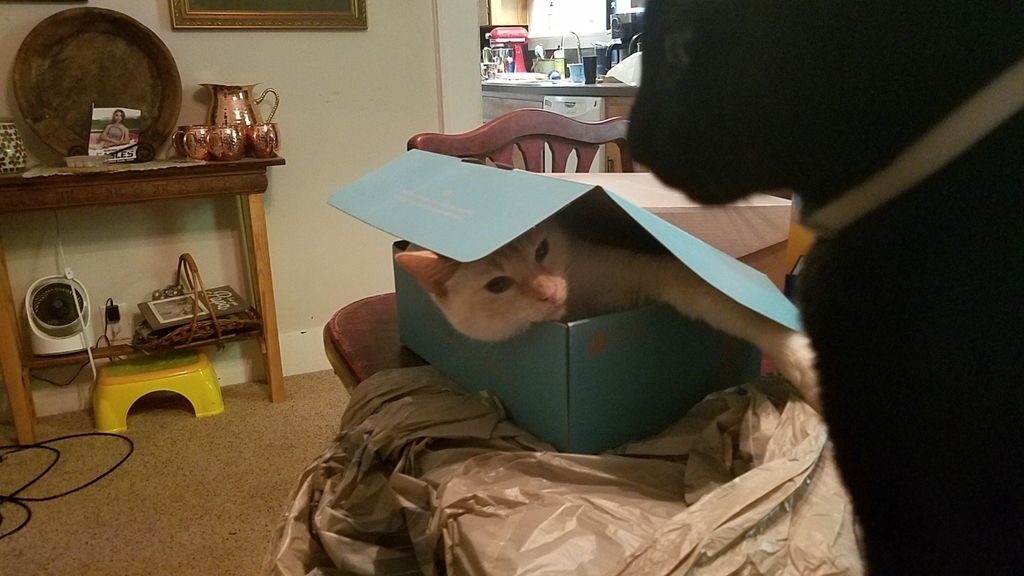 Cat in a box, Troy always up to something....