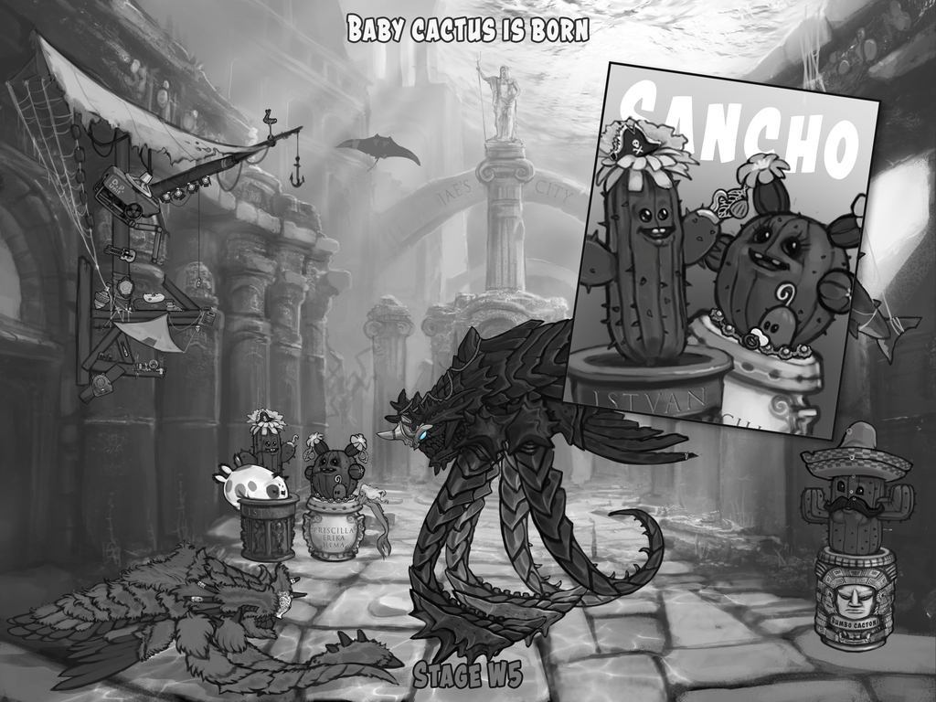 @unblinkingeye had few words to say to Istvan and Priscilla. The complete absence of babies in the sunken city was completely unacceptable. They are the only couple there after all. Turns out a little bit of encouragement and intense shaming is all that takes for cacti to reproduce. Who knew. Meet little Sancho, a baby cactus. Thanks, Unblinkingeye!