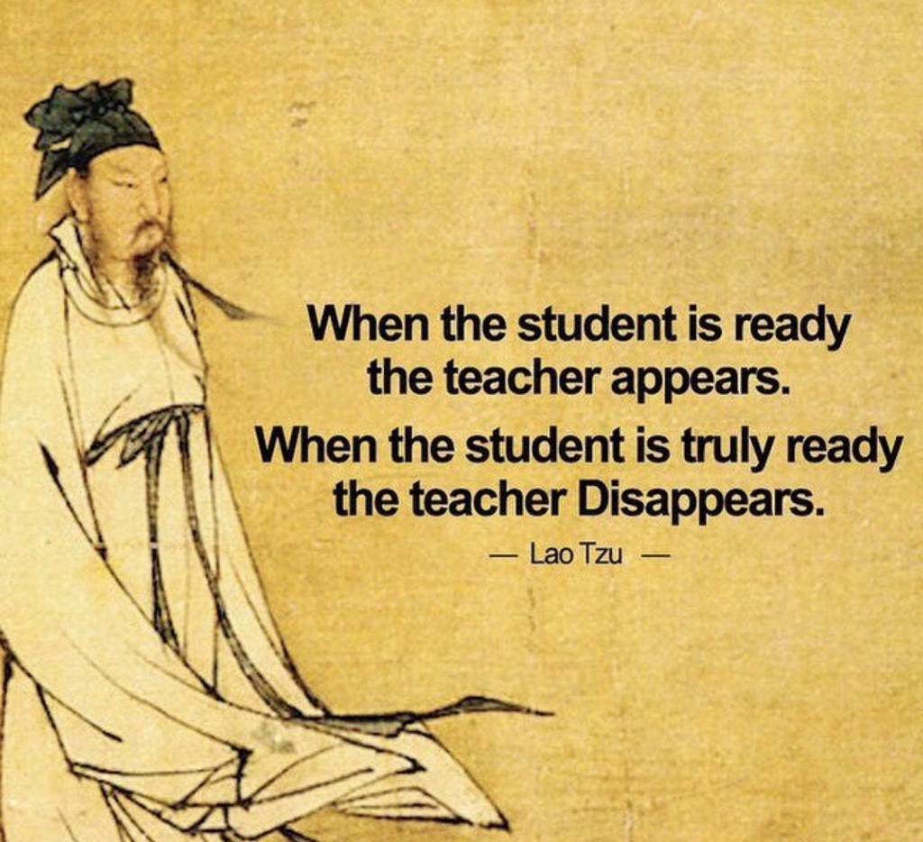 When the student is ready the teacher appears. When the student is truly ready the teacher disappears. #laotzu #laotse #guru #mentor #gnosis