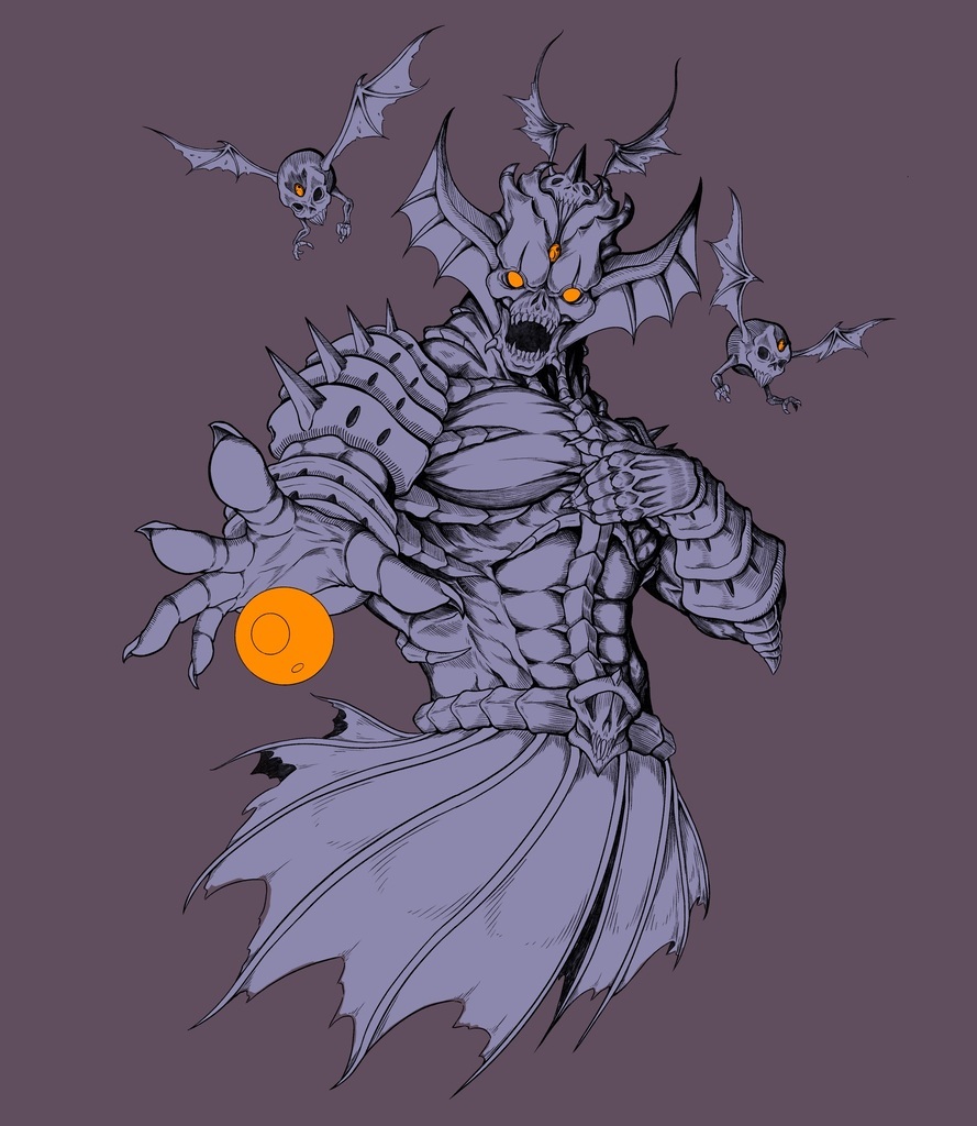 Had this guy inked for the longest time but didn’t know what to do for colors. So I just laid down some flats. Attack, my winged skull minions! #illustration #procreate #ink #fantasyart
