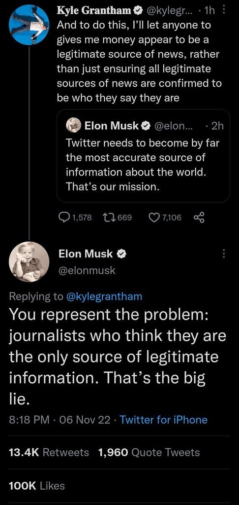 Journalist outright admitting to @elonmusk that Twitter staff determined who should be seen as legitimate through the bs verification process