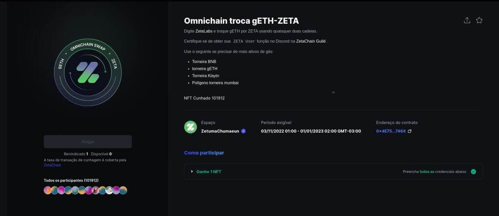 saiu o 3 nft da zeta na galxe... para os novos tem que seguir a sequencia dos videos da zetalabs para começar a interagir com o testnet do site e tambem mintar os nfts da plataforma galxe.. para os que ja pegaram os 2 primeiros nfts, peguem o segundo, não sabemos se é por meio deles que vão ser elegiveis para algo futuro...