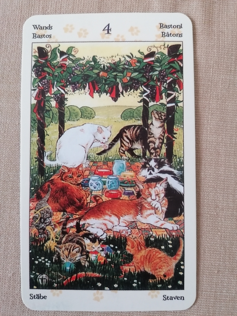 4 of wands Home, family gathering, family celebrating. Spend the day with your family, enjoy the moments together. Home is where the heart is.
