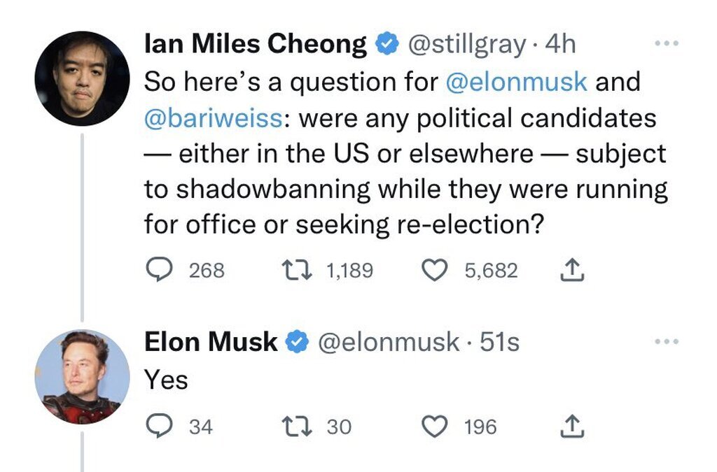 Wow! Elon confirms that Twitter shadowbanned and suppressed tweets from political candidates while they were running for office. ELECTION INTERFERENCE!