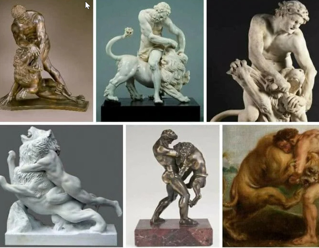 Классическое искусство, правдиво отражающее жизнь. "Геракл, пытающийся дать таблетку своему коту".