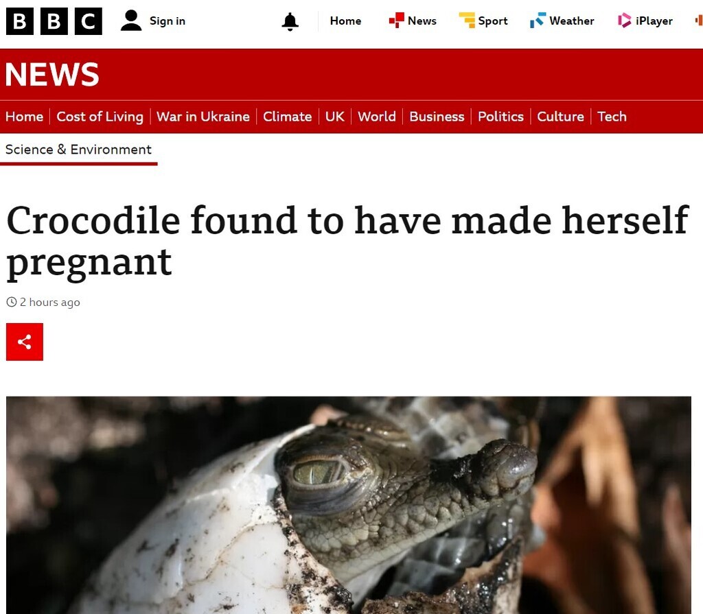 Crocodile impregnates itself; claims BBC.
