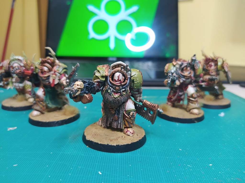 ... them. Guy with guts out is probably my fav miniature. Love his industrial vibe. Now to propha art. Feel a bit burnt out of painting minis.. (AI caption: ; ; ; )