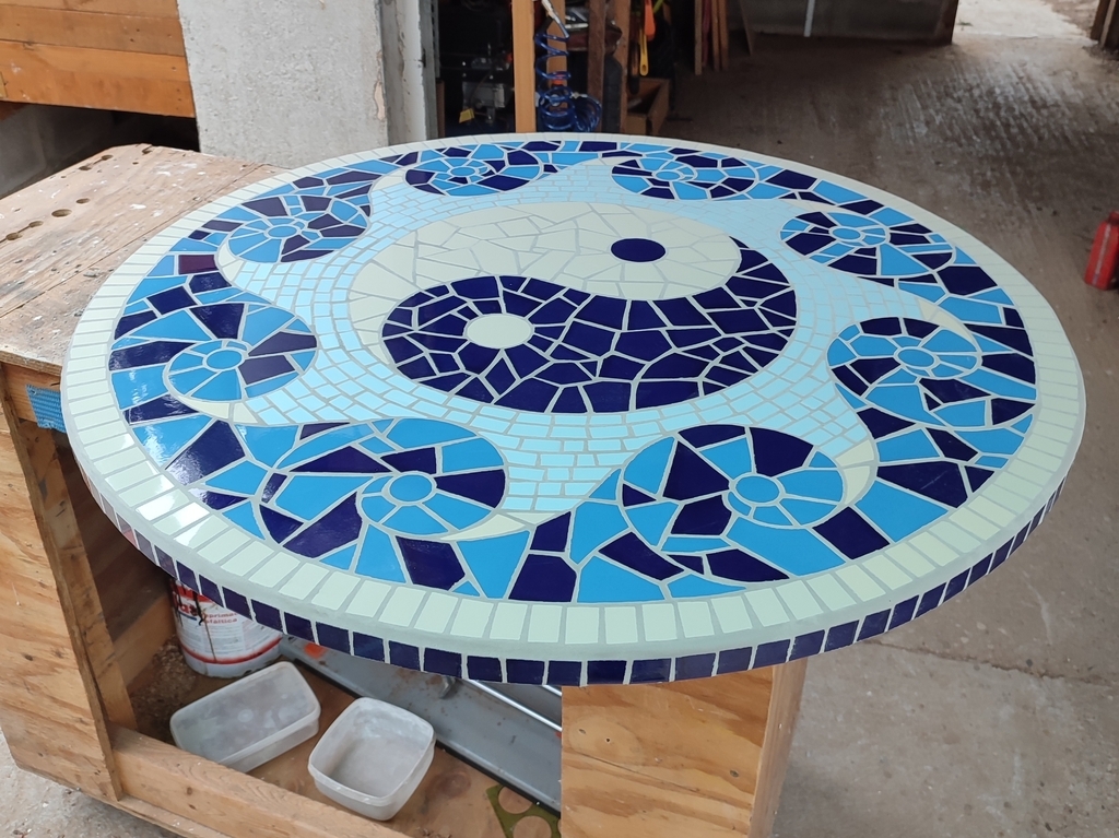 Hand cut mosaic table-top, commission for a friend, 95cm diameter (Tiled on top of an old granite tabletop)