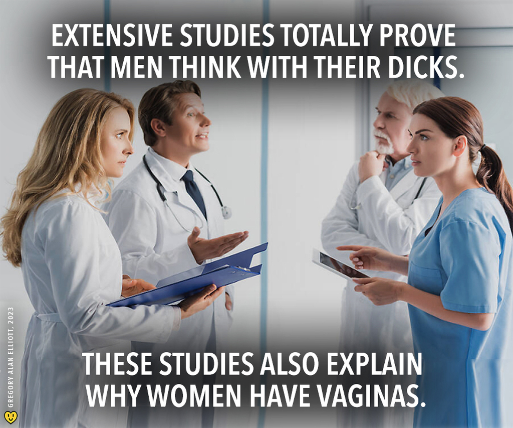 ... dicks. These studies also explain why women have vaginas. #men #women #think #thinking #intelligence.