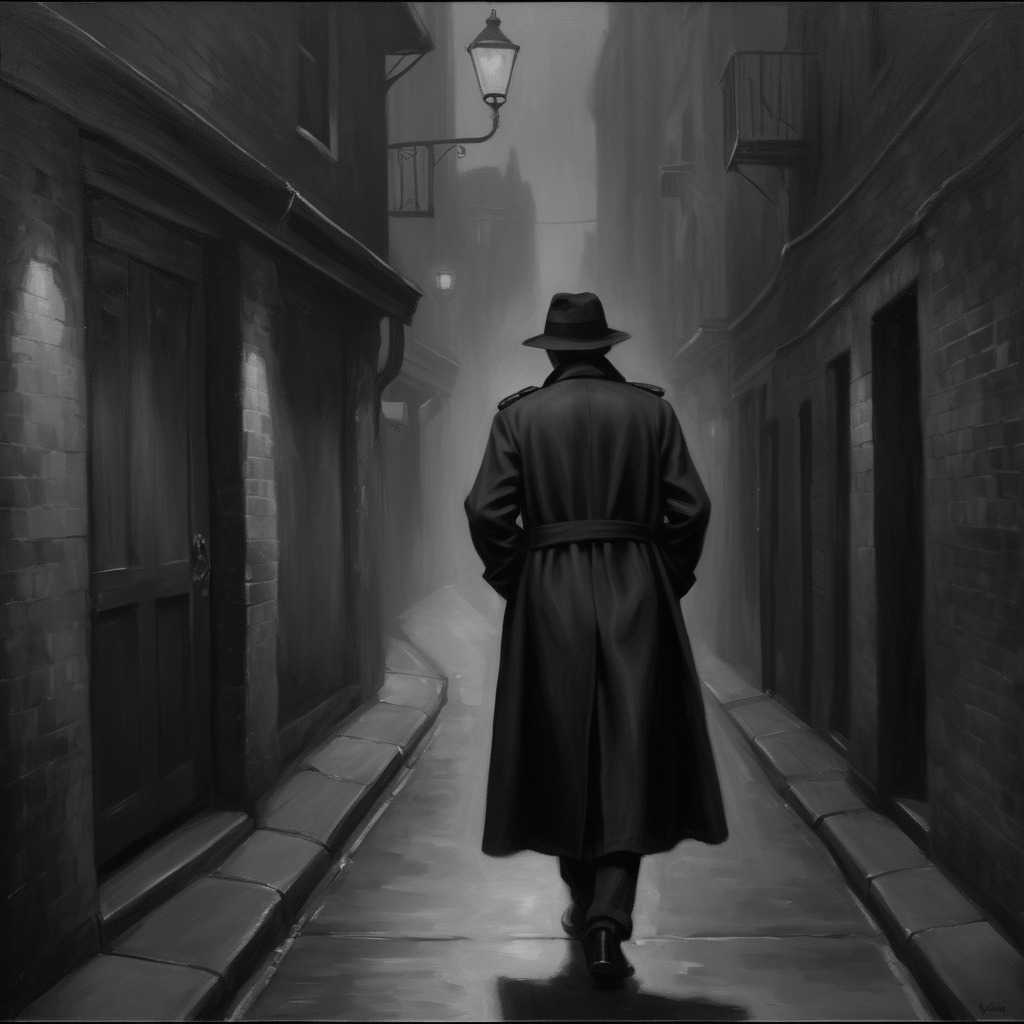 I love film noir, the play with light, shadows and contrasts and it is best done in B&W, so I made the color image I got from the AI into B&W.