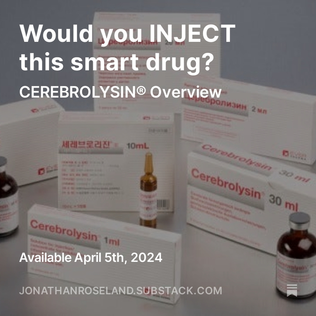 The distinguishing characteristic of #Cerebrolysin is that you inject it (intramuscularly as opposed to intravenously, which should make you feel like less of a junky). It can increase your Brain-Derived Neurotrophic Factor by as much as 600%.
