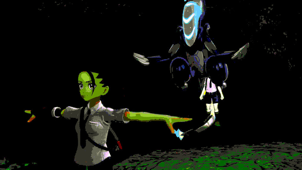 Finally editing my Pokémon Violet videos and came across this frame (it was the last second of a fade out, had to butcher the colors to make it visible)