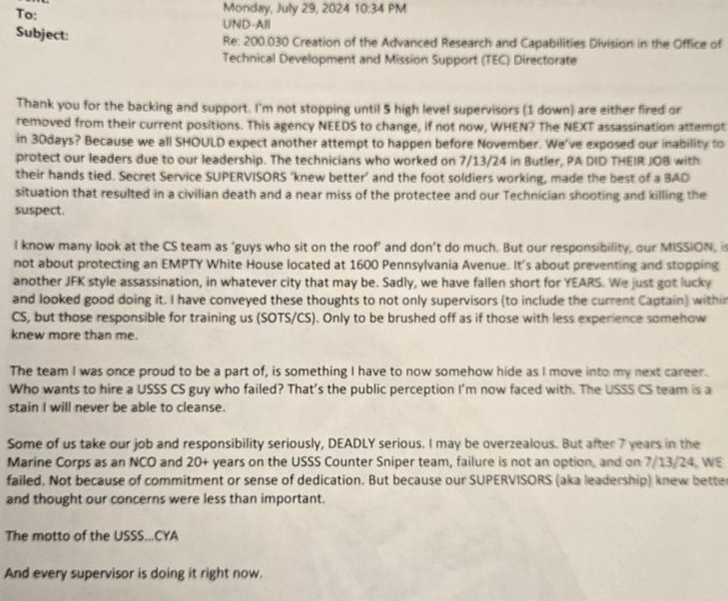 A Secret Service counter sniper sent an email Monday night to the entire Uniformed Division (not agents) saying he will not stop speaking out until "5 high-level supervisors (1 down) are either fired or removed from their current positions." The counter sniper also said the...See more