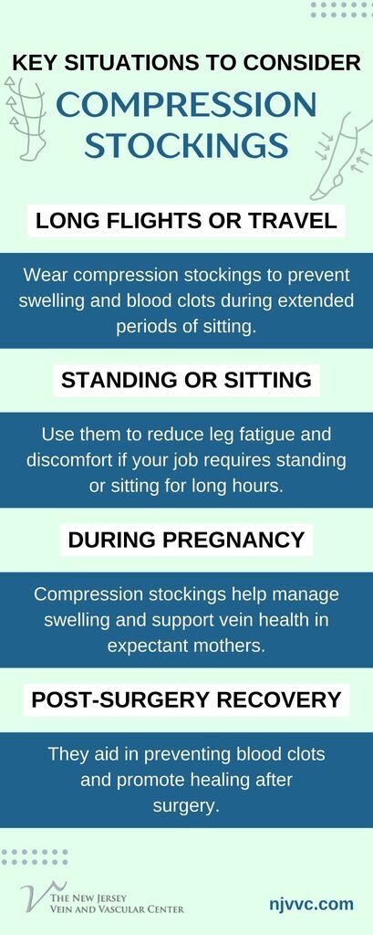 A compression stocking improves circulation by applying pressure to the leg's tissue and veins. It helps reduce swelling and promotes overall leg health during long flights, extended sitting or standing, exercise, and post-surgery. Here are some situations when you can consider using compression stockings to keep your legs feeling healthy.