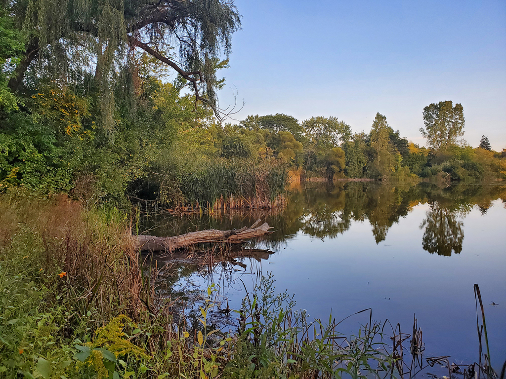 This was taken while walking around the southeast Michigan pond Saturday evening, September 21st after flying the drone over the pond (I've posted some photos and will post more). Fall is starting here in Michigan.