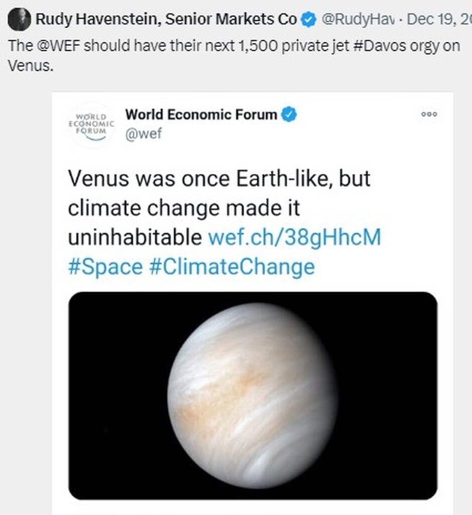 Maybe, the #WEF should have their next 1,500 private jet #Davos orgy on Venus.