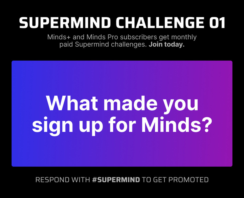 Minds+ and Minds Pro subscribers get monthly paid Supermind challenges. Join today: minds.com/about/upgrades