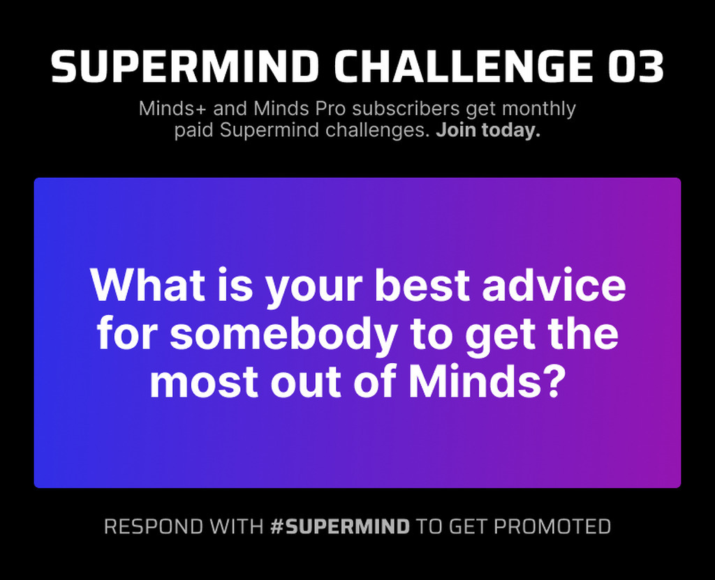 Minds+ and Minds Pro subscribers get monthly paid Supermind challenges. Join today: minds.com/about/upgrades