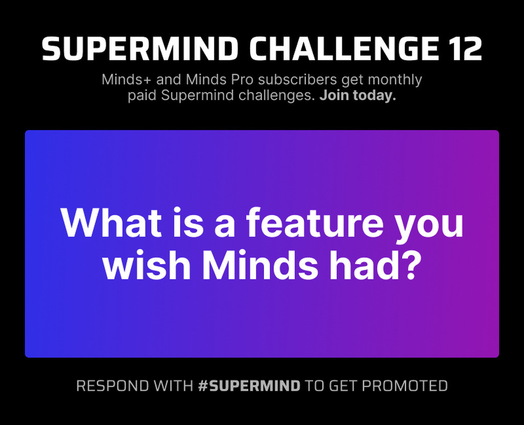 Minds+ and Minds Pro subscribers get monthly paid Supermind challenges. Join today: minds.com/about/upgrades