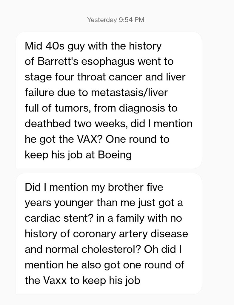 My friend has been examining heart patients for 2 decades and never saw the things he has been seeing over the last 3 years. He often sends me these brief case reports on patterns and "coincidences" he's noticed in the vaxxed.