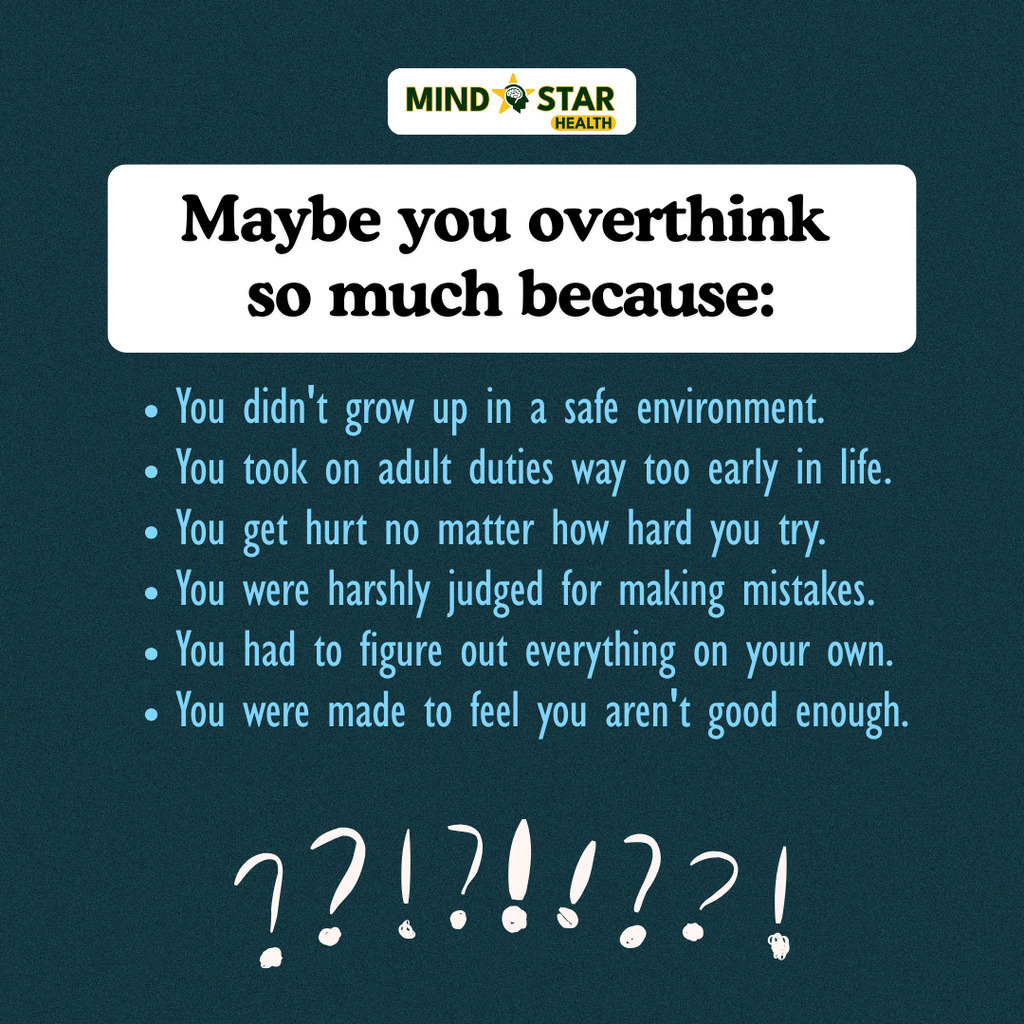 Overthinking is often caused by being raised in unsafe environments, taking on early responsibilities, facing judgment, experiencing hurt, navigating alone, and being made to feel inadequate.
