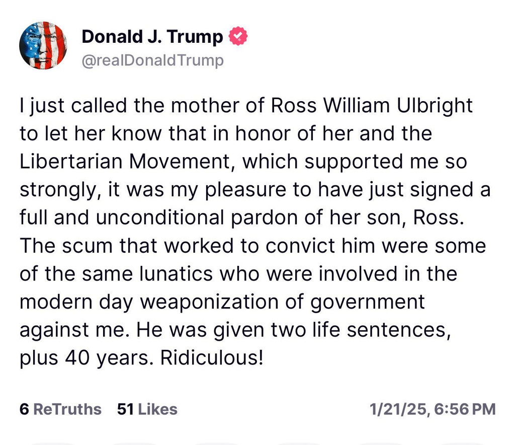 Ross Ulbricht is free!!!! The LP did this. Angela McCardle did this. Coalition building did this. Most importantly President Trump kept his word and did this. This is why I paid my dues to the LP when I had given up hope. Moving the ball forward even one yard is a win for liberty.