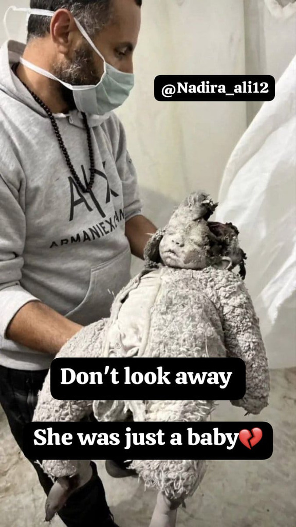 Does anyone else think that this looks like a doll covered in dust and not a dead baby? Just the way he's holding it does not look like someone would hold a dead baby...